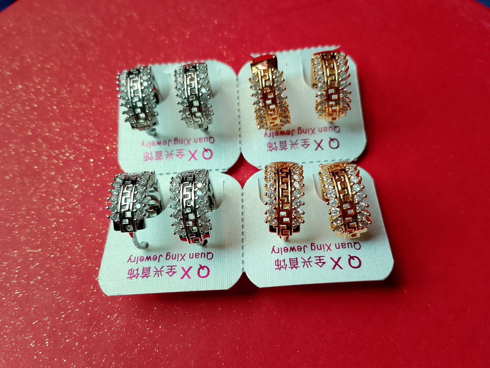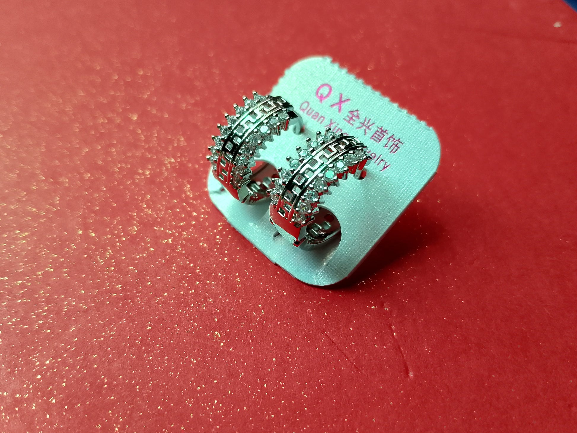 These elegant hoop-style earrings come in both silver and gold tones, beautifully embellished with sparkling crystals and a chic geometric pattern. Perfect for parties, weddings, or daily wear, they add a refined touch of glamour to any outfit. A must-have jewelry piece for those who love timeless style with a modern edge.