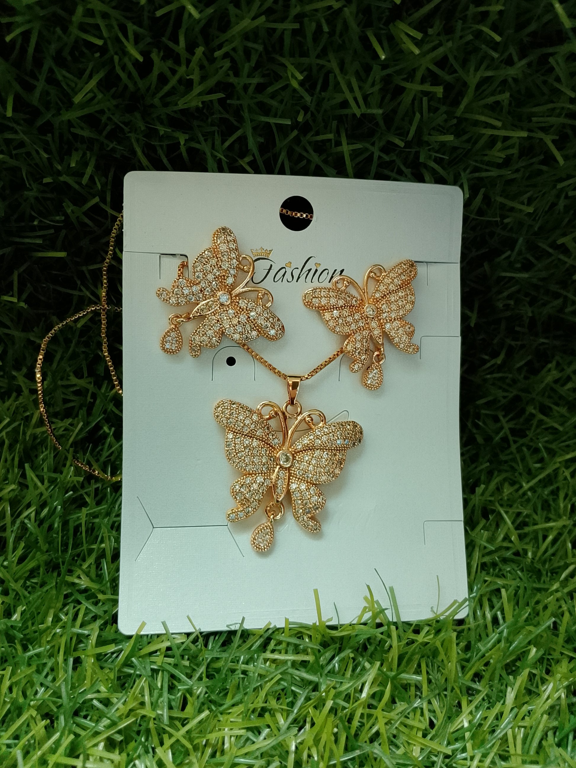 Dazzling Butterfly Sparkle Necklace & Earrings Set