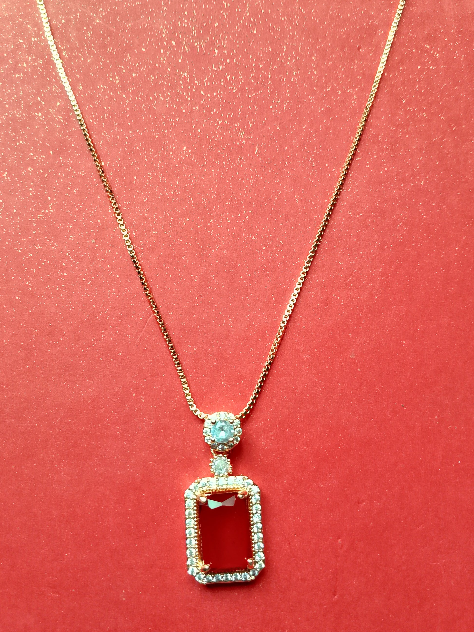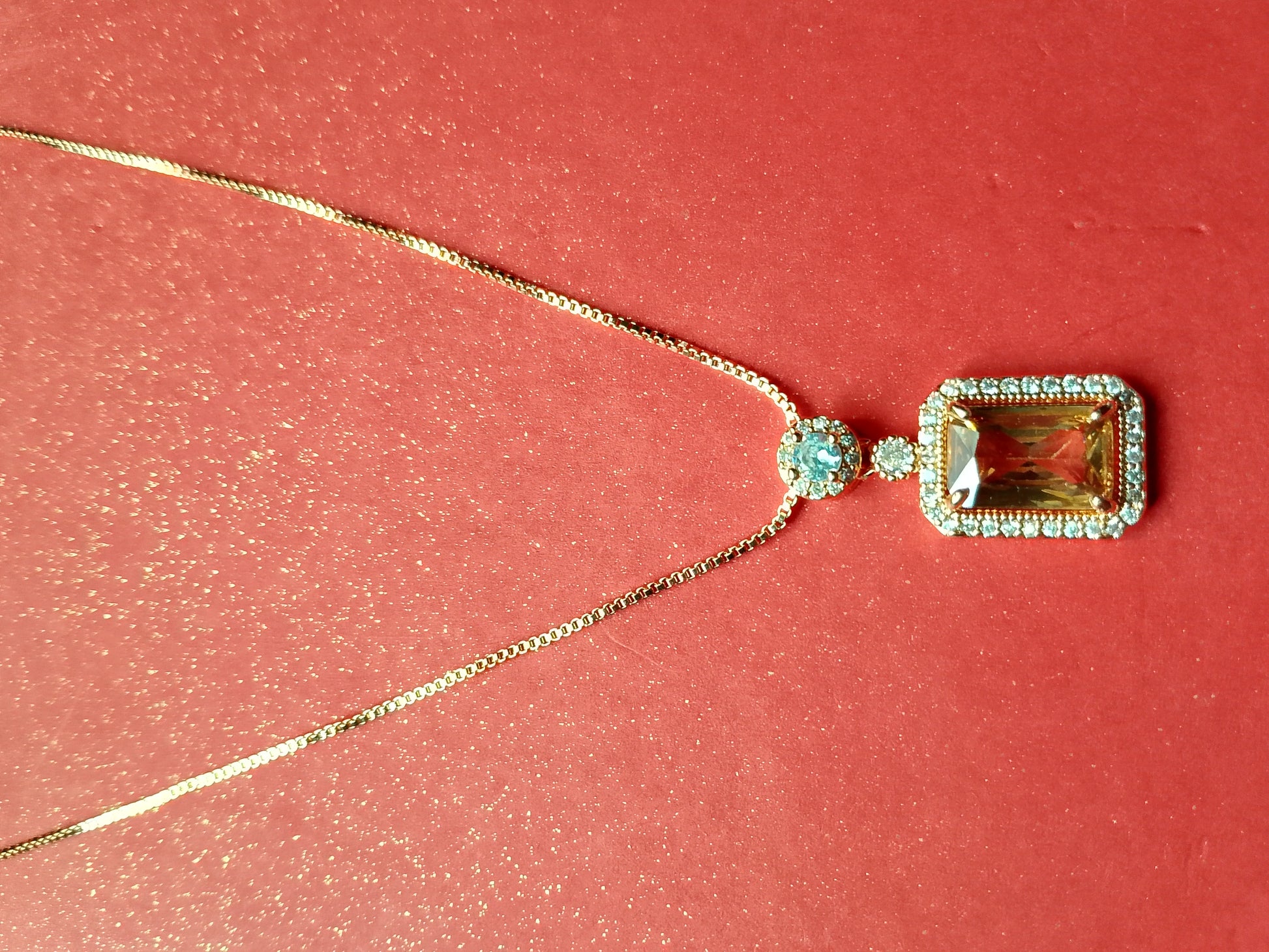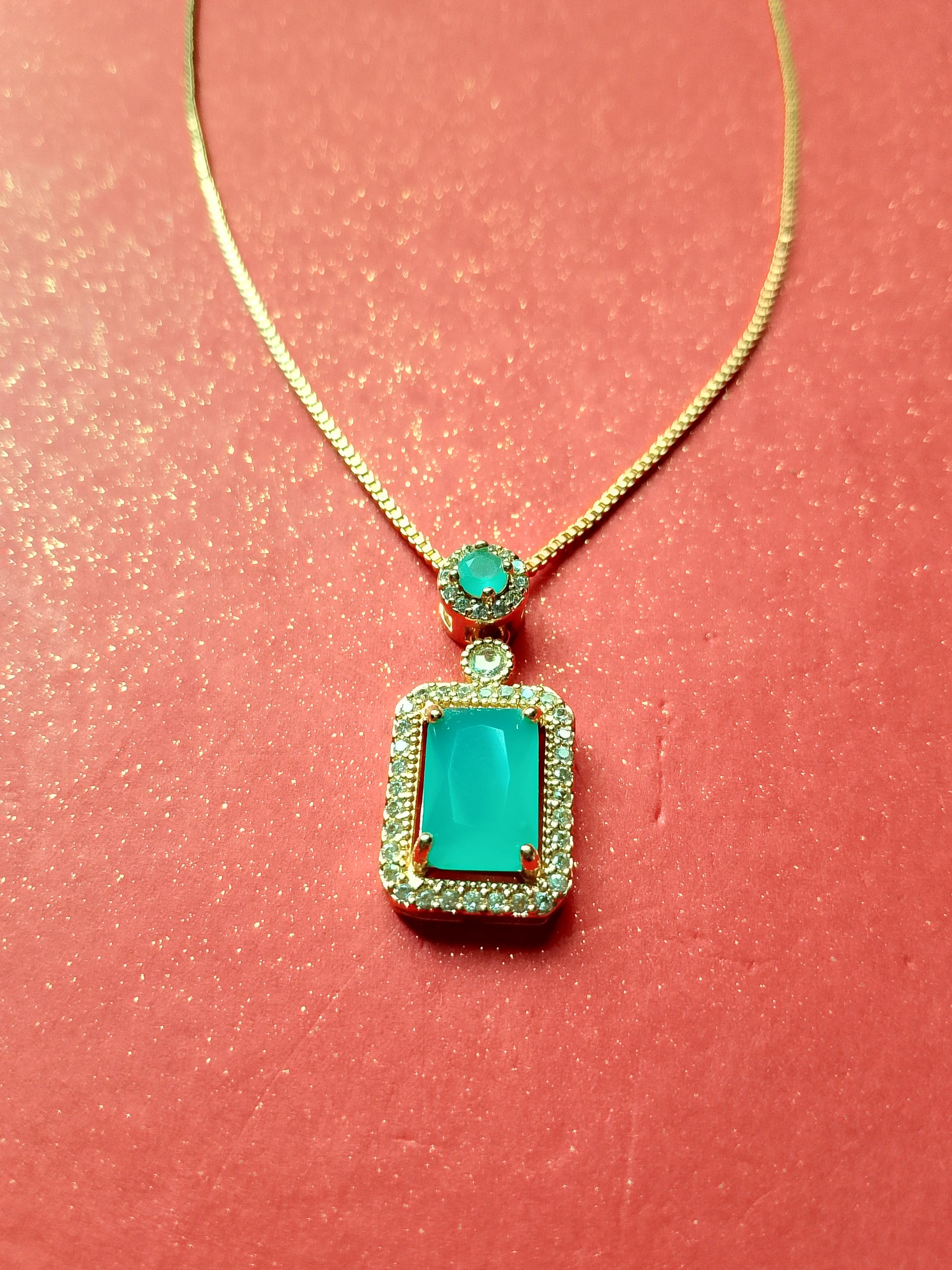 Add a touch of sophistication to your look with this stunning gold chain necklace featuring a radiant emerald-green rectangular pendant framed with shimmering stones. The double-stone design enhances its charm, making it perfect for parties, weddings, or everyday elegance. A timeless piece to elevate your jewelry collection.