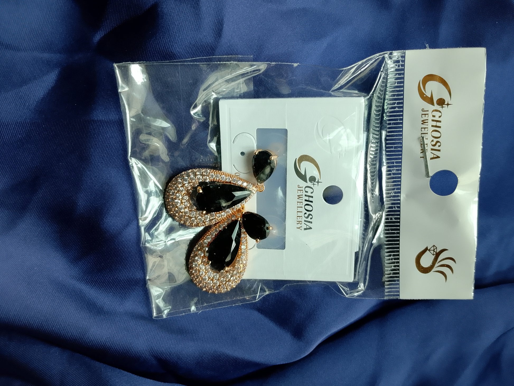 Elegant Statement Drop Earrings - Black Teardrop with Crystal Halo