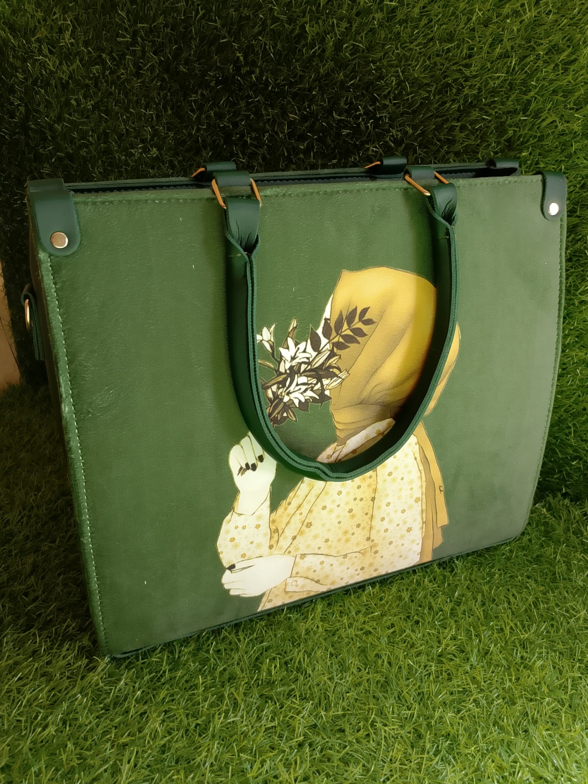 Experience refined style with the Hijab Girl Printed Bag from Rebranded.store! This sophisticated bag features sturdy dual handles with metallic accents and elegant branding, blending durability with chic design. Ideal for daily use or special occasions, it offers ample space for your essentials. Shop now at Rebranded.store!