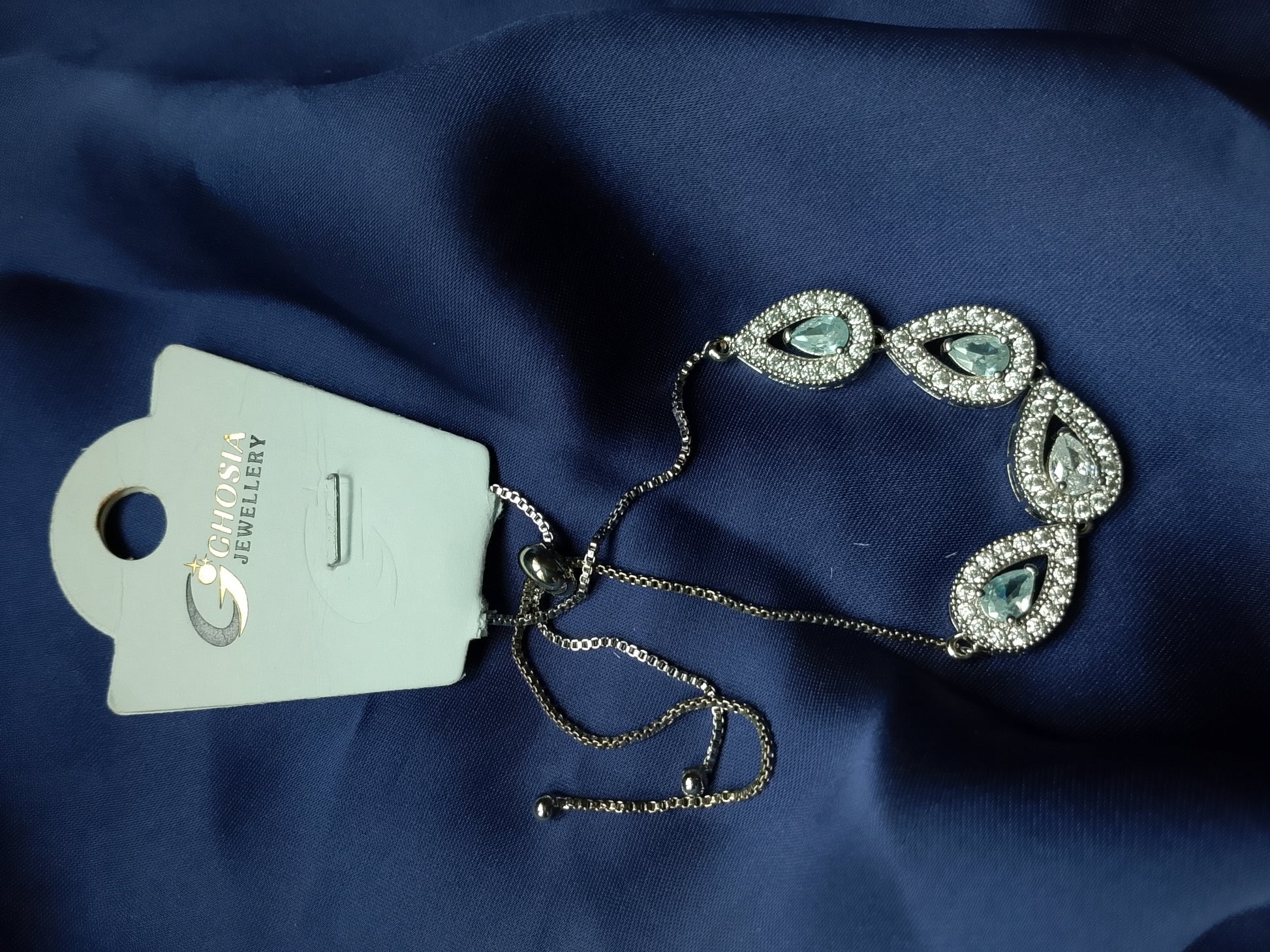 This elegant silver-tone bracelet features four sparkling pear-cut crystal teardrops surrounded by pavé accents. The convenient slider (bolo) chain ensures a perfect, adjustable fit for any wrist size. Add instant, red-carpet glamour to your evening look.