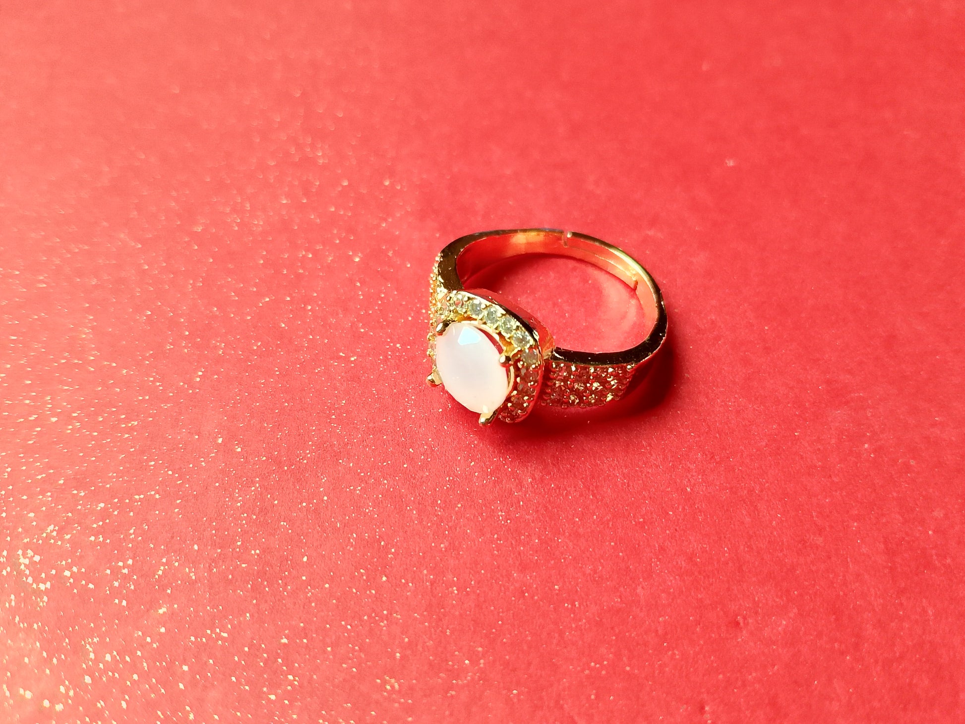 Elevate your style with this stunning gold-plated ring, a timeless piece that adds a touch of glamour to any outfit. The centerpiece is a beautiful, smooth oval gemstone, surrounded by a halo of sparkling cubic zirconia stones that catch the light from every angle. The polished gold-plated band is both comfortable and durable, making this ring perfect for everyday wear or a special occasion. This exquisite ring is available in a variety of captivating colors to match your unique style.