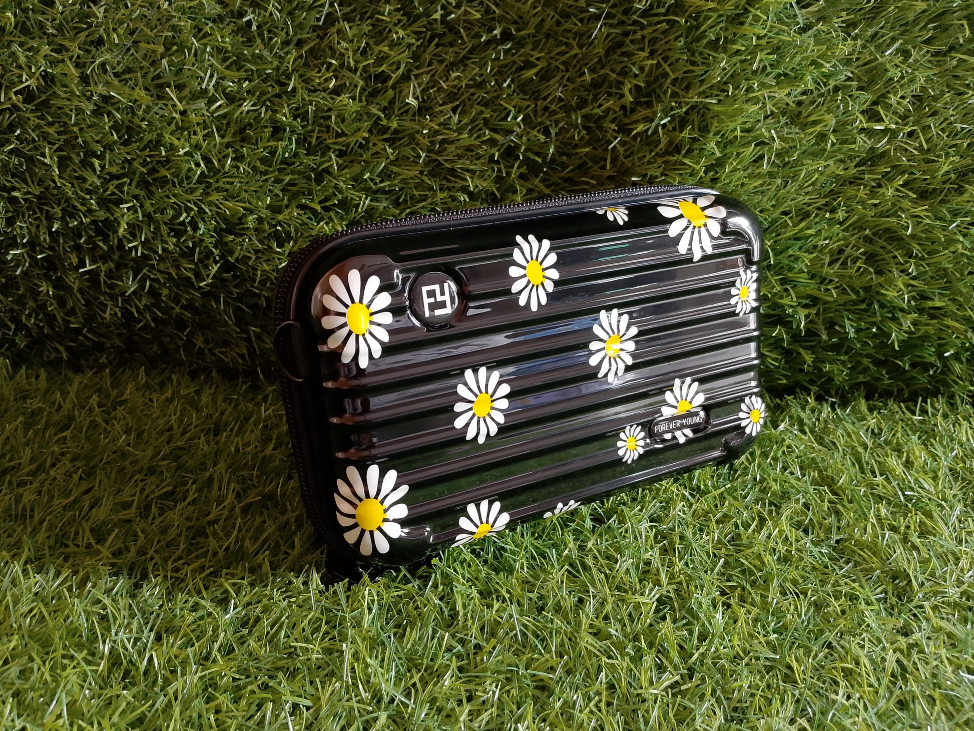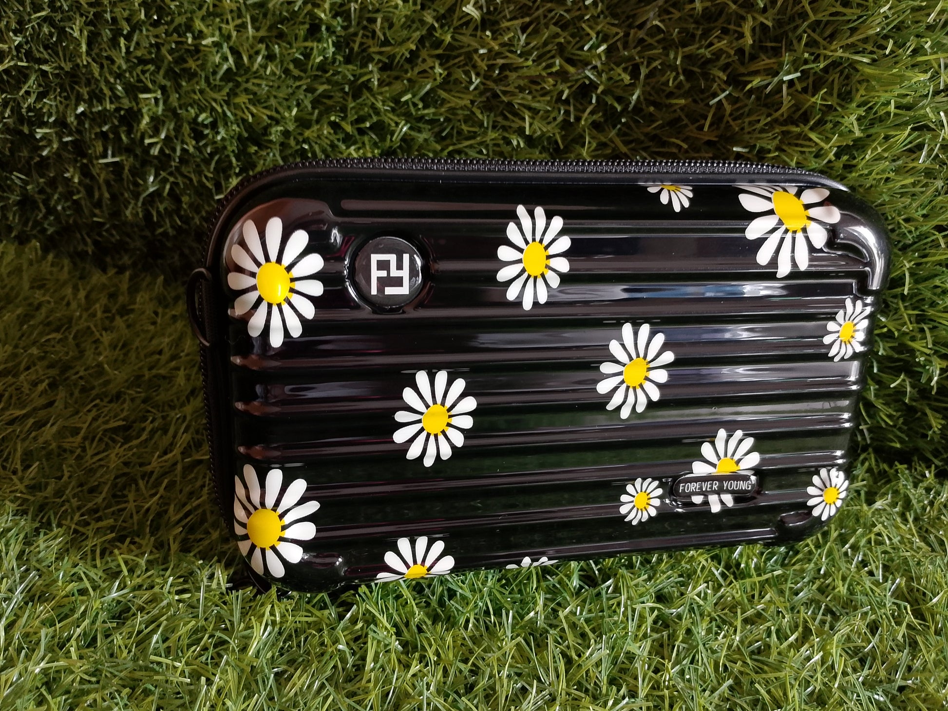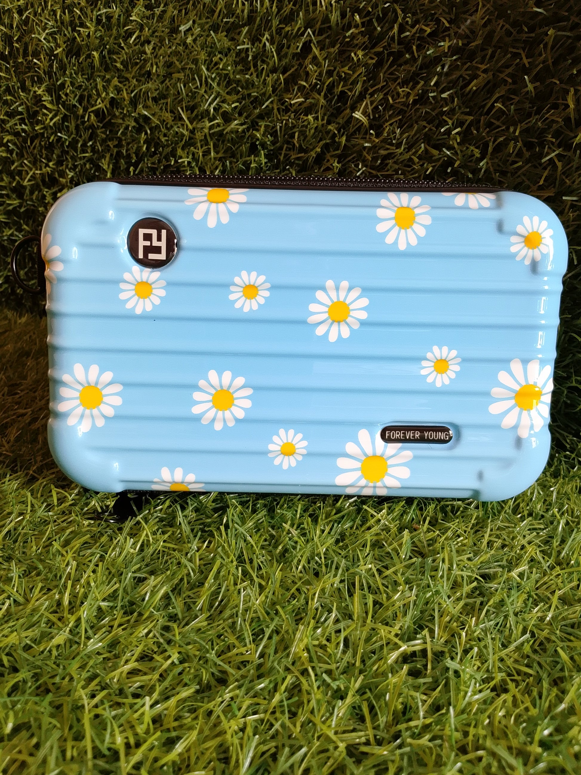 Brighten your style with the Sunny Daisy Clutch from Rebranded.store! This vibrant yellow clutch features a playful daisy print with orange centers, paired with a sturdy black zipper closure. Perfect for adding a cheerful touch to any outfit, its durable design makes it ideal for everyday use or special occasions. Shop now at Rebranded.store!