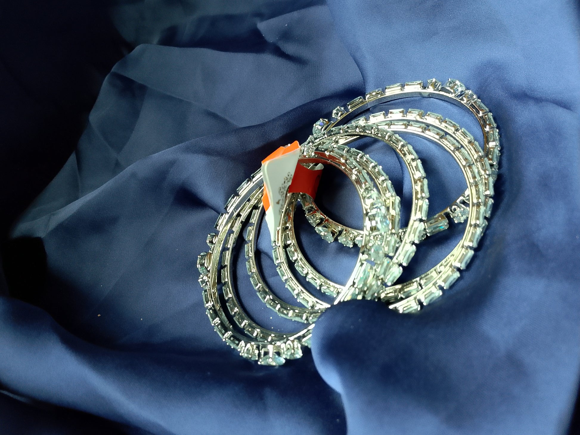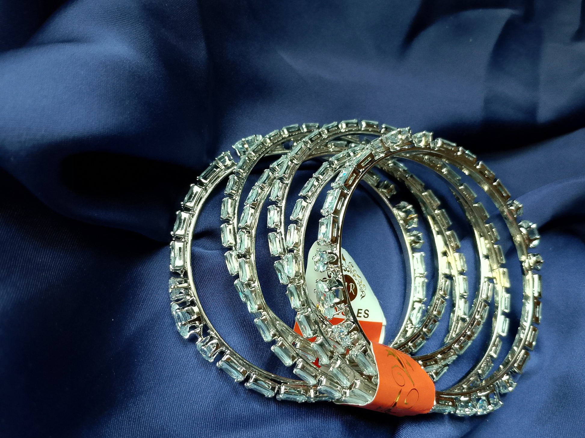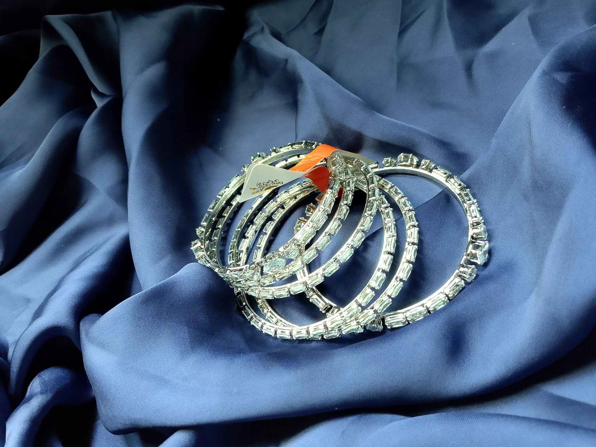 This dazzling set combines vibrant turquoise stones with rows of brilliant clear crystals set in a rich gold tone. Designed to be worn together, these bangles offer an unforgettable, multi-layered sparkle. Effortlessly ReBrand your style for weddings and festive occasions.